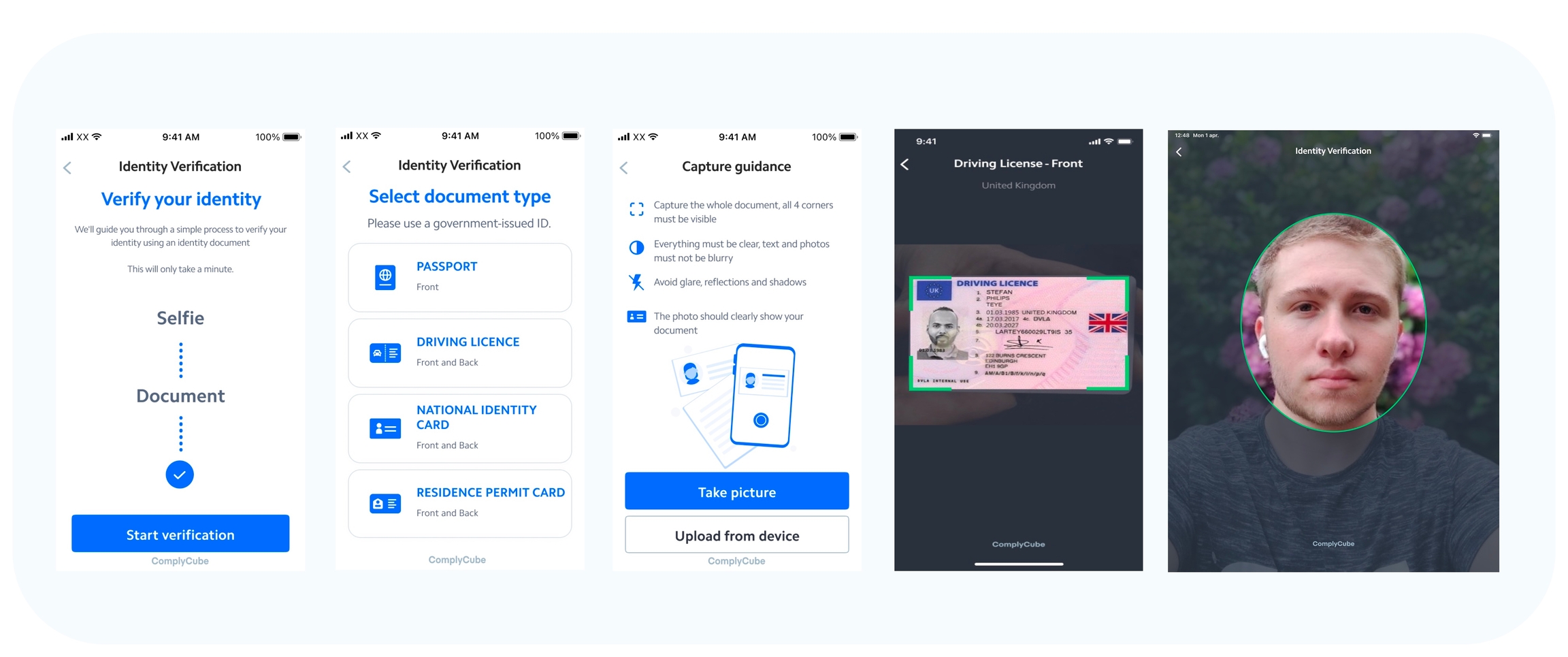 ComplyCube provides native SDKs to embed identity verification flows directly into your mobile apps.