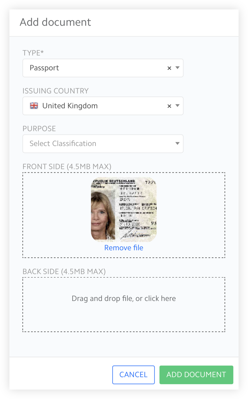 Click "Add Document" to upload the document.