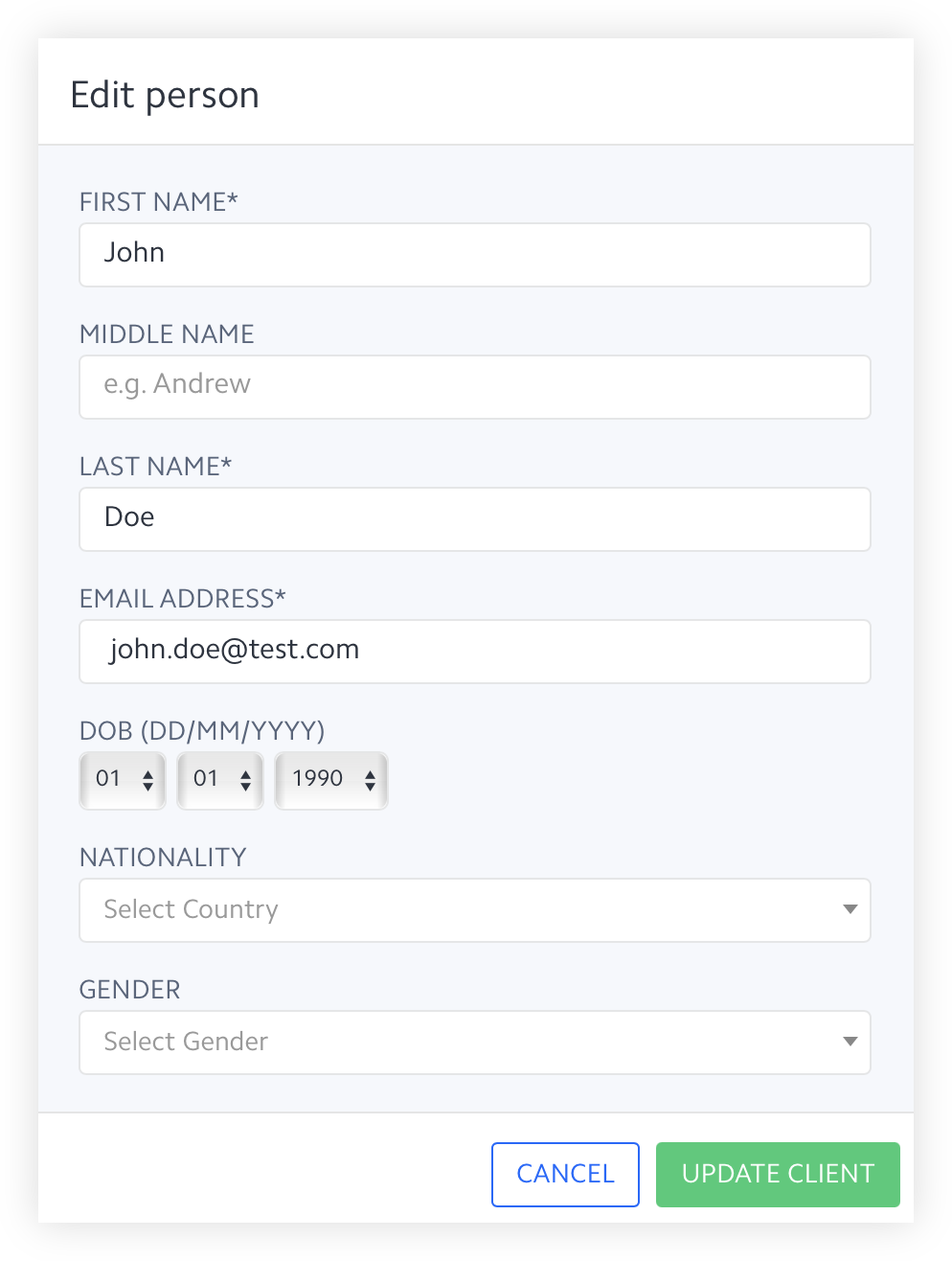 The more data you provide about a client, the richer and more accurate ComplyCube AML Screening checks will be. We highly recommend that you provide the client's date of birth before conducting an AML Screening check.